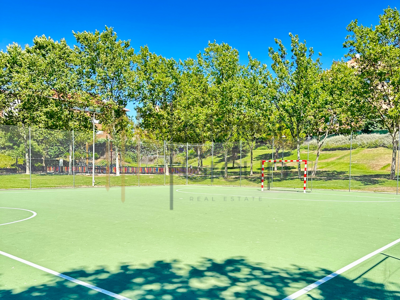 Próxima a supermercados, bares, centros comerciales, paradas de autobús, colegios, un gran parque con zonas infantiles, pista de fútbol y de baloncesto.